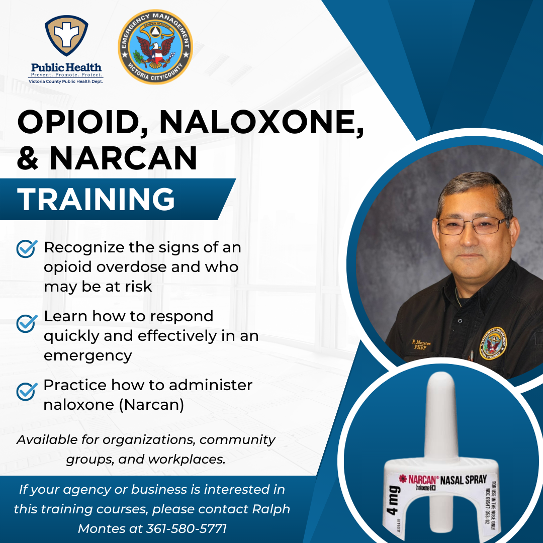 Our Public Health Emergency Preparedness Coordinator, Ralph Montes, is offering opioid overdose response trainings to help equip our community with the knowledge, skills, and confidence to act quickly when it matters most. These trainings provide important information on recognizing the signs of an overdose, how to respond effectively, and how the use of naloxone (Narcan) can help save lives. By increasing awareness and preparedness, we can work together to reduce the impact of opioid overdoses and create a safer, more informed community.